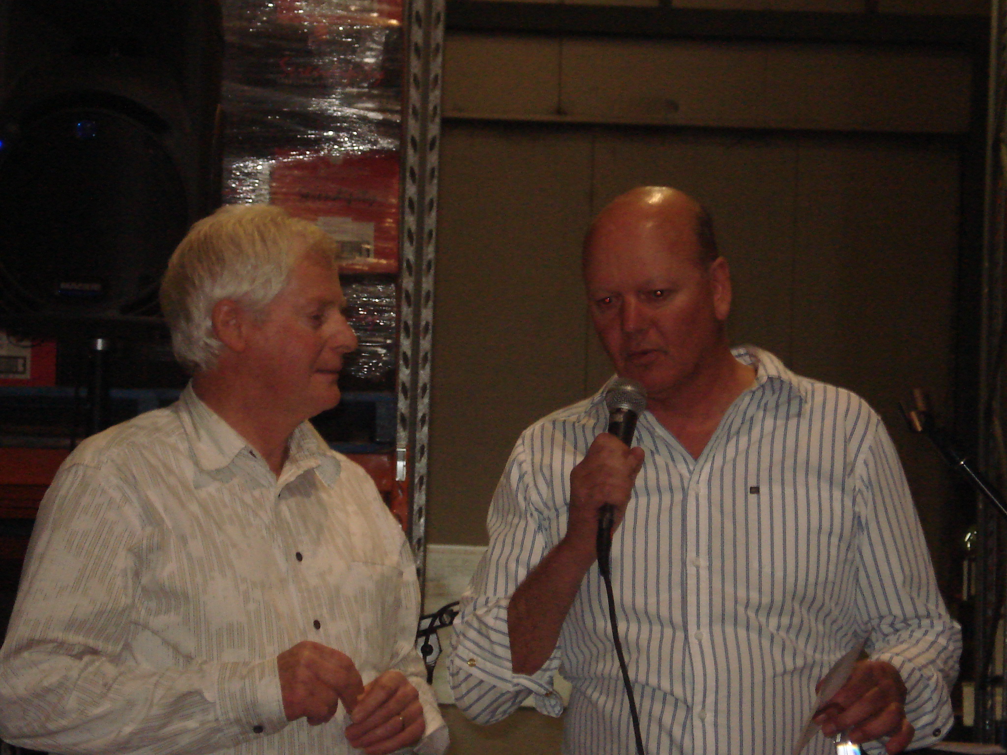 On a beautiful sunny day in Currency Creek, John Loxton, head winemaker at Ballast Stone wines, presented the winery’s ten latest vintages of shiraz at a lunch in the barrel room at the winery on 10/10/10. John Riddell of Channel 7 and Mix 102.3 hosted the event, attended by 150 or so guests. Tigchandler collected a few snippets of the entertaining commentary by the Johns.