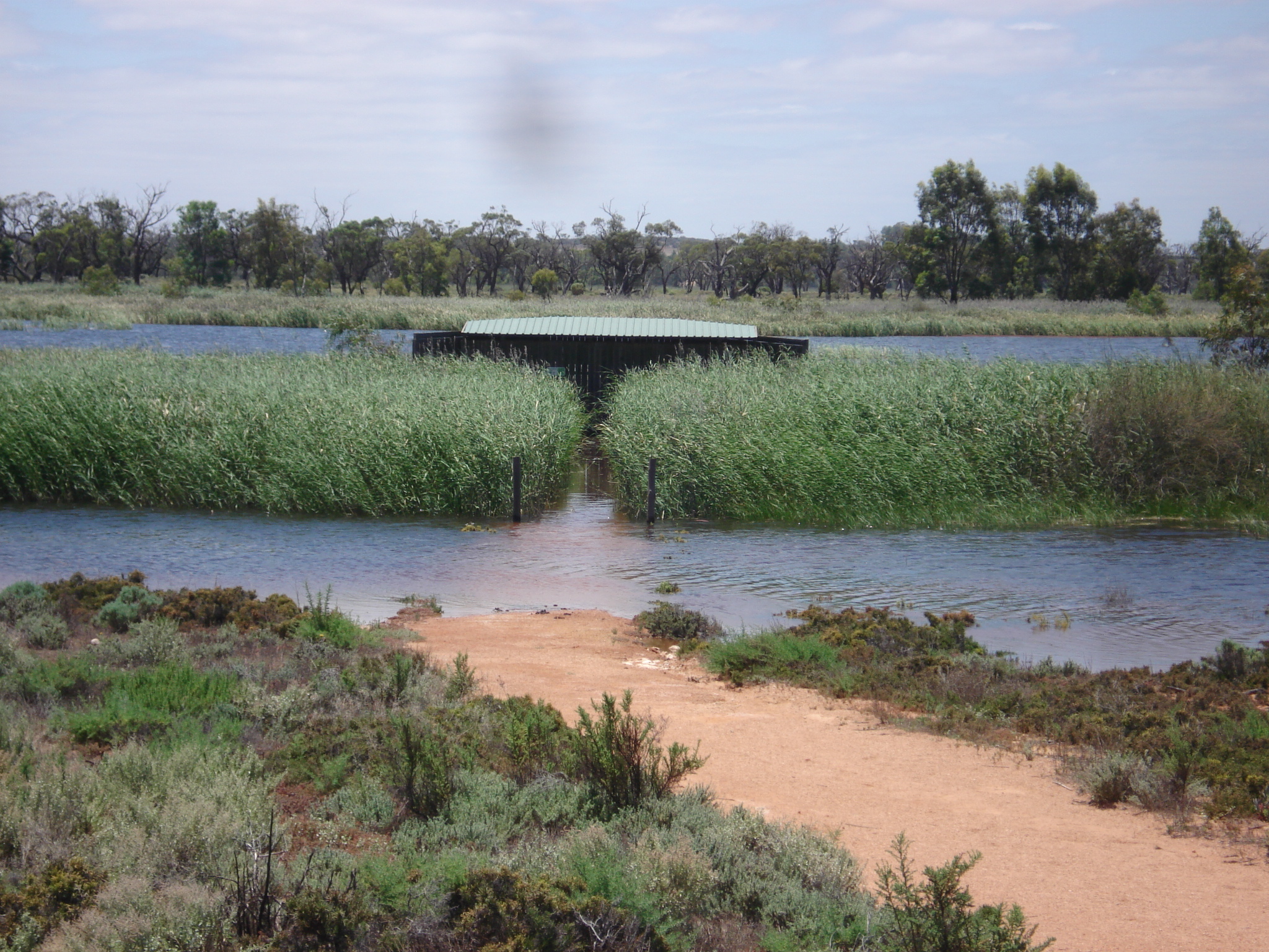 Karen told me it was the norm to have a managed dry and wet cycle, controlling the Murray River flow to stimulate the breeding of native birds and animals. Banrock Station has been managing this wetland since 1994. Flooding is a natural part of the cycle of the wetlands and is necessary for the survival of the ecosystem. The current flows in late 2010 are expected to reach between 65,000 to 80,000 megalitres (ML) per day, compared to drought levels of nearer 2,000 ML/day. The last flood was in 1996, with a comparable peak flow of 76,000 ML/day. However, the current flood is relatively minor by historical standards, as information boards along the walk tell you – in 1956 there was a “1 in 200 year event” with peak flows of 341,000 ML/day.