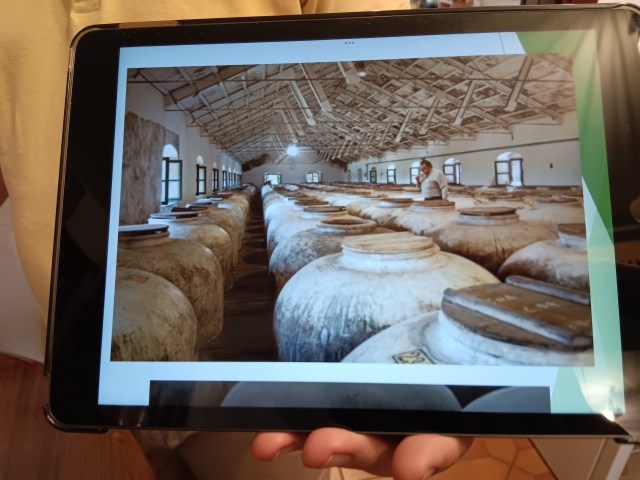 The winemaking style is similar to sherry from Jerez. Here it is simply referred to as Cordoba wine although the wine region is in fact Montilla-Moriles. It is fermented in ceramic containers called tinajas with a gap in the top (see the pics) so the flor is open to the air. It is fermented using natural yeast that dies at 15% alcohol, so the wines are all 15% or higher. At such high alcohol levels, they are best with food and not in large quantities!