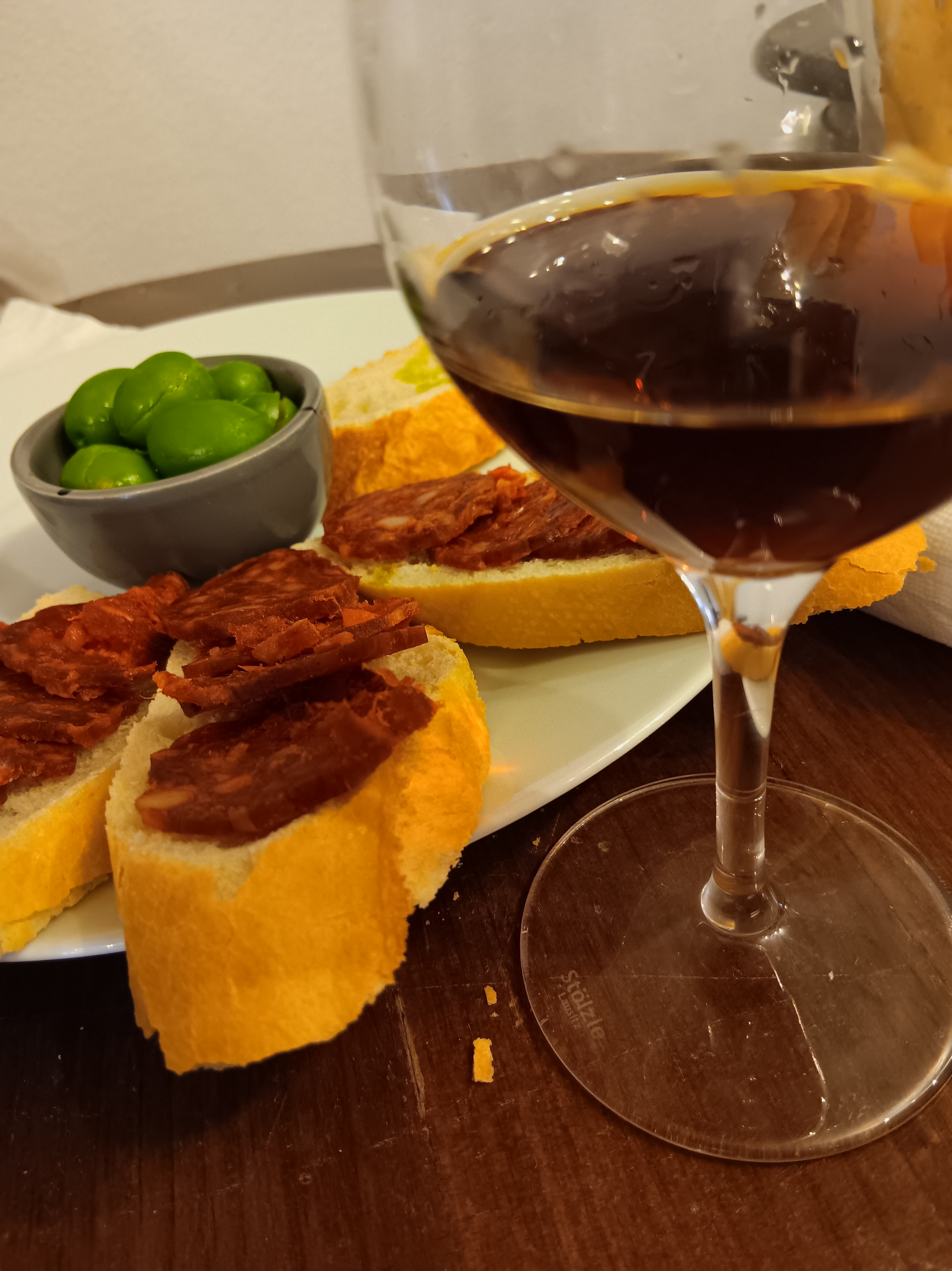 There were four wines all typical of Cordoba and all from the pedro ximenez grape. Ah you say isn’t that what you make sherry with. Apparently, sherry, named after the Jerez wine region, is mostly made from the palomino grape and the pedro ximenez they use in their dessert wine is brought in from Cordoba! The pedro ximenez grapes are higher in sugar for the dessert wine.